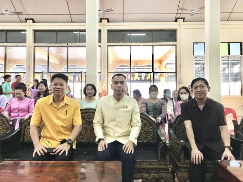 นายสมศักดิ์ จิตรวิไลย พัฒนาการอำเภอบางน้ำเปรี้ยว พร้อมด้วยเจ้าหน้าที่พัฒนาชุมชนอำเภอบางน้ำเปรี้ยว จัดกิจกรรมแต่งผ้าไทยใส่บาตร ตามโครงการอาสาแก้จนเฉลิมพระเกียรติ ในหลวงรัชกาลที่ 10