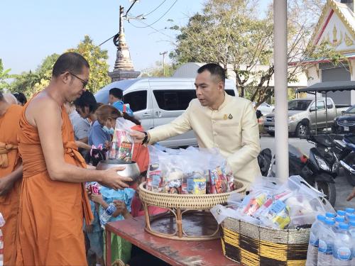 อิ่มบุญ !! พช.บางน้ำเปรี้ยว จัดกิจกรรมแต่งผ้าไทยใส่บาตร ตามโครงการอาสาแก้จนเฉลิมพระเกียรติ ในหลวงรัชกาลที่ 10