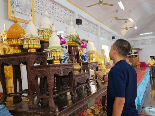 พช.บางน้ำเปรี้ยว จัดกิจกรรมแต่งผ้าไทยใส่บาตร ตามโครงการอาสาแก้จนเฉลิมพระเกียรติ ในหลวงรัชกาลที่ 10