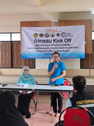 นายสมศักดิ์ จิตรวิไลย พัฒนาการอำเภอบางน้ำเปรี้ยว พร้อมด้วยเจ้าหน้าที่พัฒนาชุมชน จัดกิจกรรม Kick off หมู่บ้านป้องกันและแก้ไขปัญหายาเสพติด ด้วยกระบวนการกองทุนแม่ของแผ่นดิน