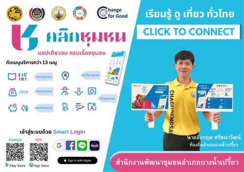 สำนักงานพัฒนาชุมชนอำเภอบางน้ำเปรี้ยว ขอเชิญชวนดาวน์โหลดแอพลิเคชั่น "Click ชุมชน" เวอร์ชั่นใหม่ 13 เมนูบริการ พร้อมการยืนยันตัวตนผ่านThaiD