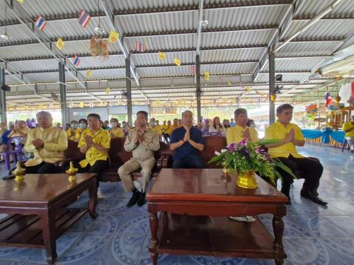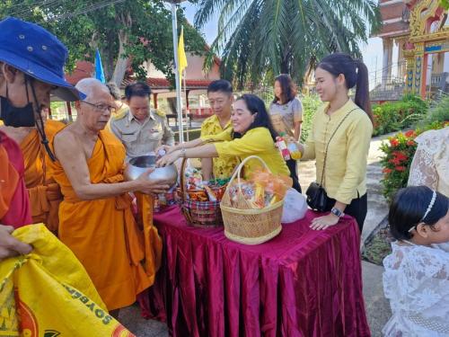 นายสมศักดิ์ จิตรวิไลย พัฒนาการอำเภอบางน้ำเปรี้ยว พร้อมด้วยเจ้าหน้าที่พัฒนาชุมชนอำเภอบางน้ำเปรี้ยว จัดกิจกรรมแต่งผ้าไทยใส่บาตร ตามโครงการอาสาแก้จนเฉลิมพระเกียรติ ในหลวงรัชกาลที่ 10