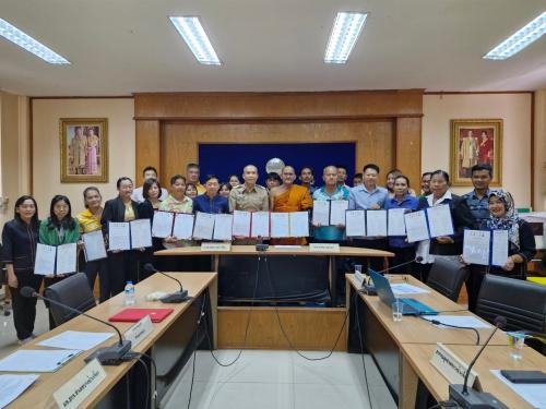 ??นายธีระพล สุ่มมาตย์ นายอำเภอบางน้ำเปรี้ยว เป็นประธานในพิธีฯ โดยมีภาคีเครือข่ายทั้ง ๗ ภาคส่วน ได้แก่ ภาครัฐ ภาควิชาการ ภาคผู้นำศาสนา ภาคเอกชน ภาคประชาชน ภาคประชาสังคม และภาคสื่อมวลชน ในอำเภอบางน้ำเปรี้ยว ร่วมลงนามในพิธีฯ